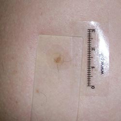 Intradermální névus – pravidelně pigmentovaný, ohraničený hrbolek s vyrůstajícím vlasem. Odstranění pouze z kosmetických důvodů.
